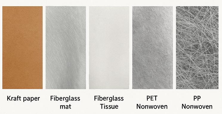 Back surface에 사용되는 소재는 유리섬유 면재, Polyester 면재, PP면재, Kraft paper 등 소재로 생산이 가능합니다.